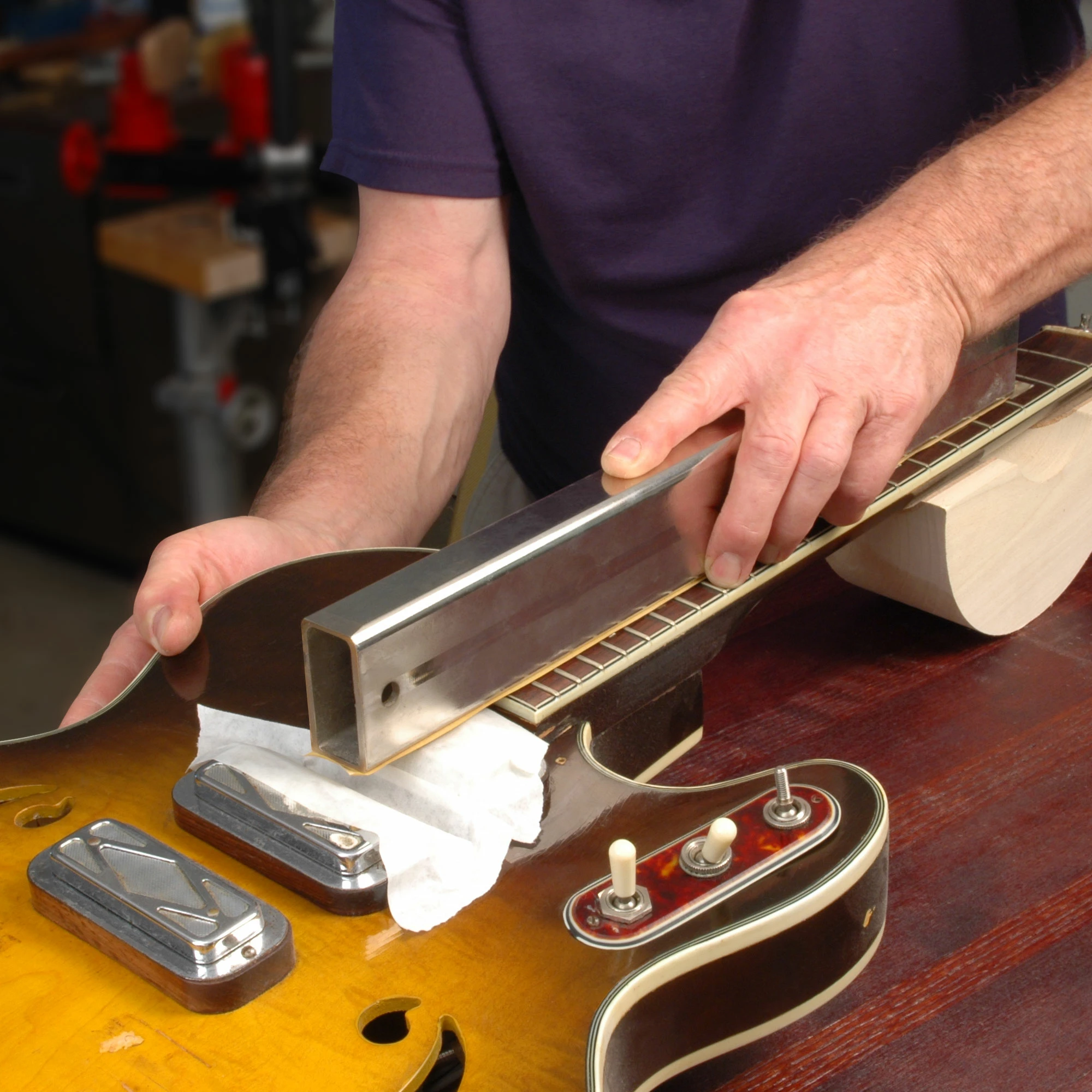 The 1″ width instantly (and cleanly!) fits our Fret/Fingerboard Levelers and StewMac Fretbar Understring Leveler. No more time spent trying to get a straight cut, and then throwing away what you don’t need. Grab exactly the length you want, attach it to the Leveler, and you’re ready to work.