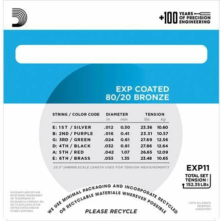 - Extra-bright tone mixed with deep and projecting bottom end, EXP Coated for 4 times more life