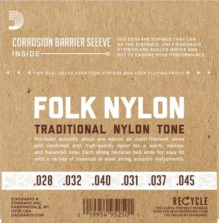 D’Addario Folk Nylon strings are constructed with high quality nylon and a ball end on each string to facilitate easy installation on classical or steel string acoustic guitars, if desired.