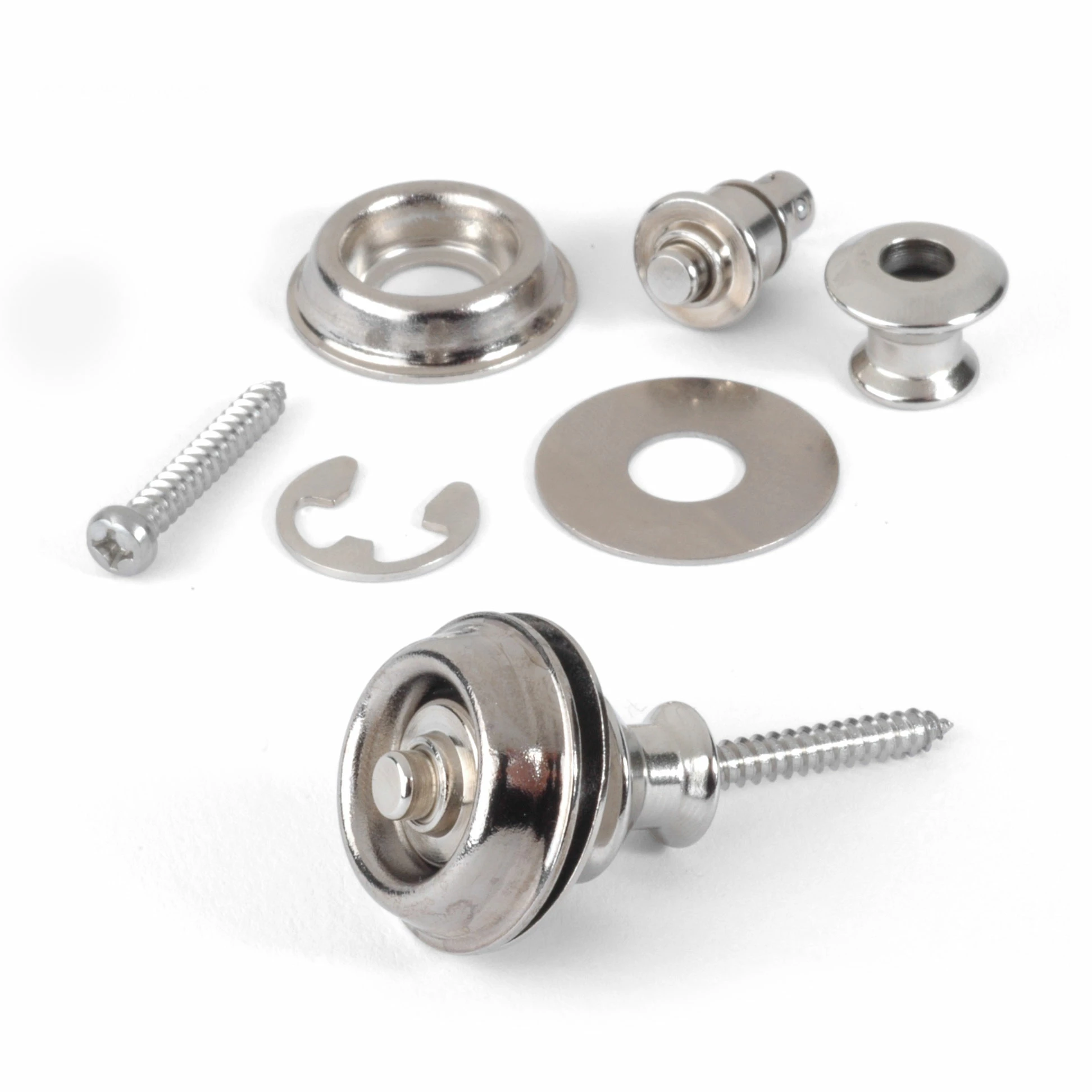 A case-hardened system for safe, secure strap attachment. Features a 4-ball lock and recessed plunger. Set of 2.