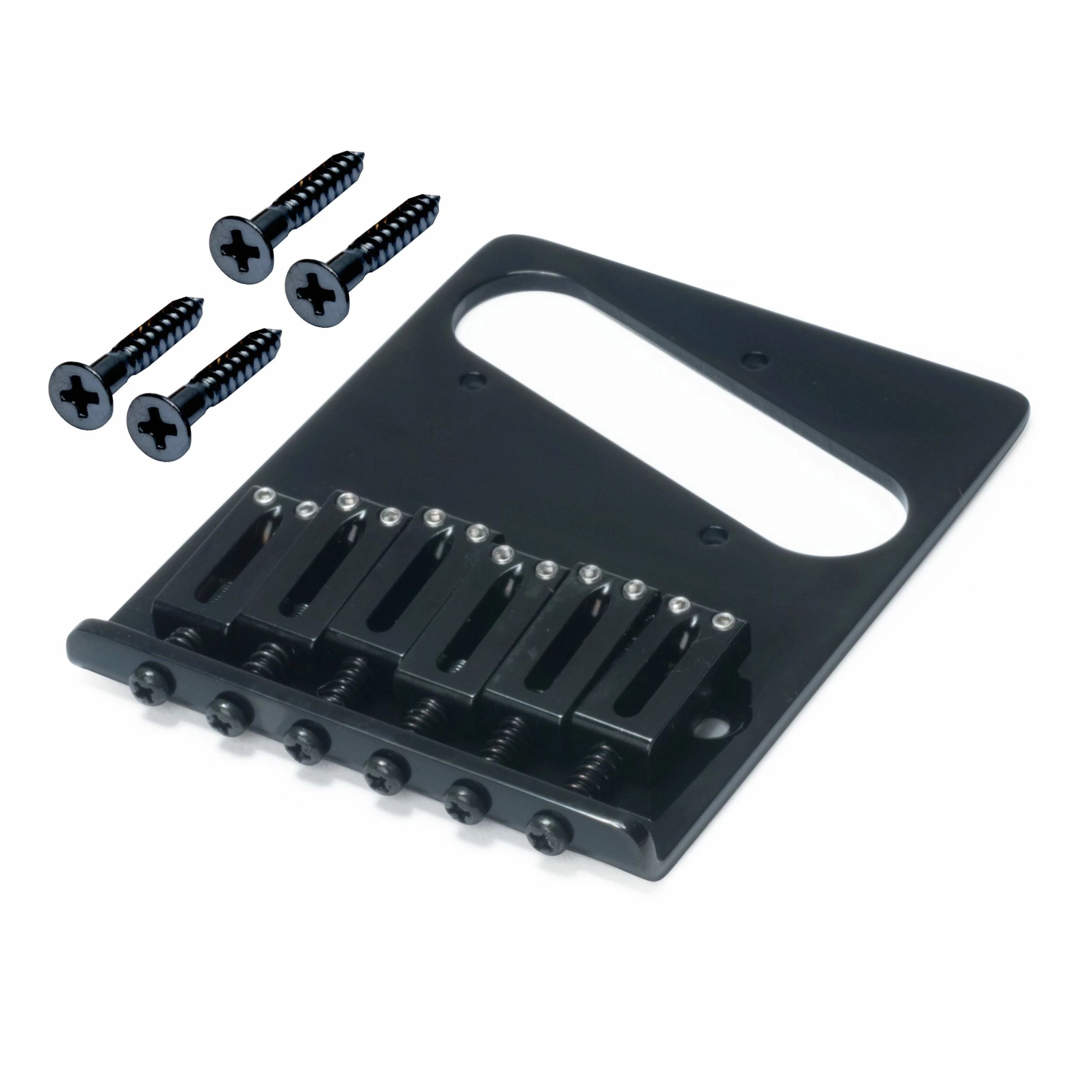 For use with a Tele bridge pickup and through-body string attachment. This is a heavier bridge with a solid brass baseplate and allen-adjustable brass saddles. Mounting screws included.