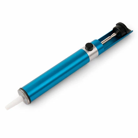 Simply push down with your thumb to load spring tension, place the nozzle on a heated solder joint, and press the button. The old solder is instantly sucked away.