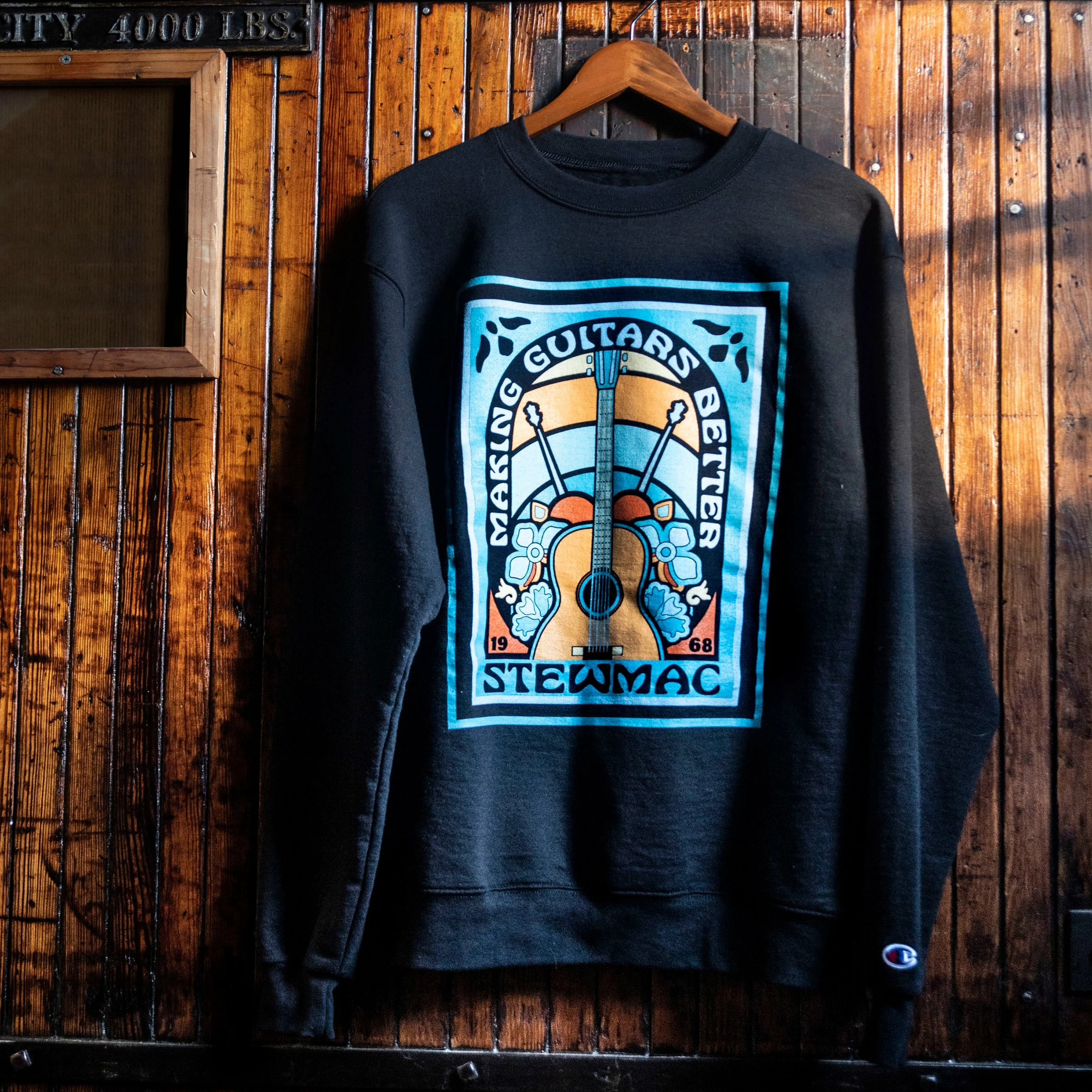 Our StewMac by Melissa Simonian sweatshirt is inspired by the psychedelic album art of the 60s and celebrates our founding in 1968.