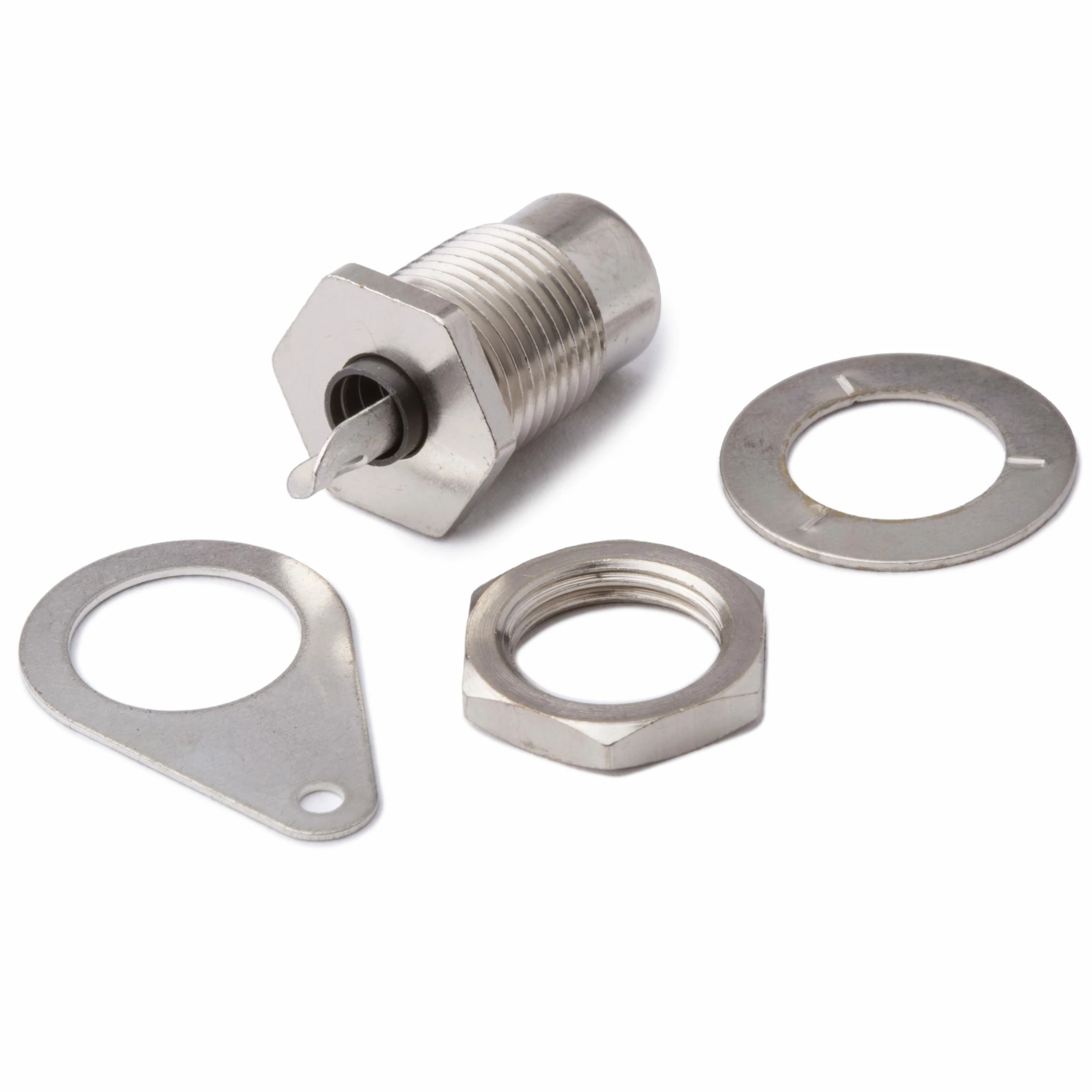 Switchcraft RCA/phono jack. Good replacement for Fender. Mounts in a 3/8″ hole.