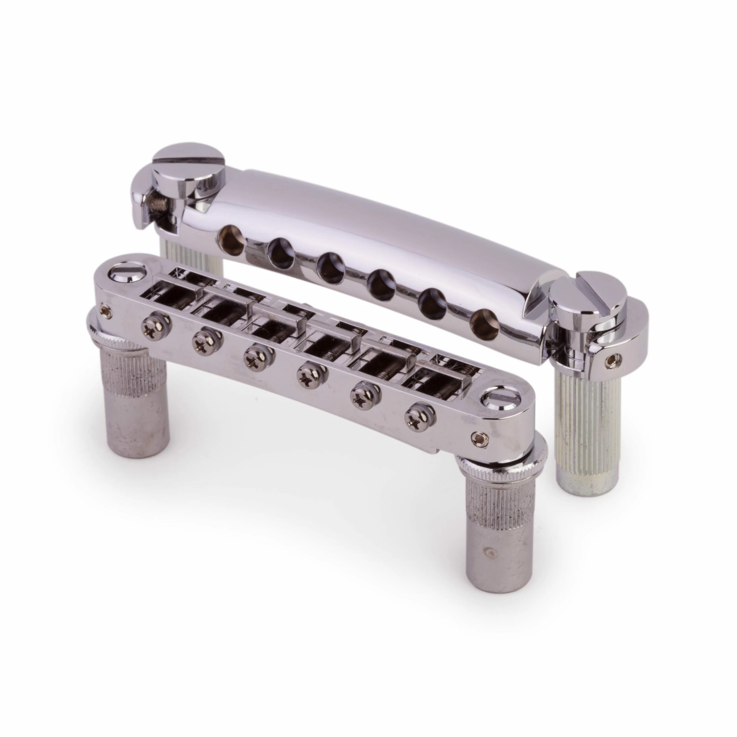 Upgrade your bridge and stop tailpiece with TonePros. One of the electric guitar’s easiest upgrades, TonePros’ locking functionality instantly improves any stock bridge system. For most guitars, it’s a drop in replacement. The TonePros LPM02 set is designed for “fat post”, metric-style and import guitars and comes with a notched bridge saddles ready for instant installation.
